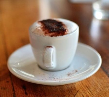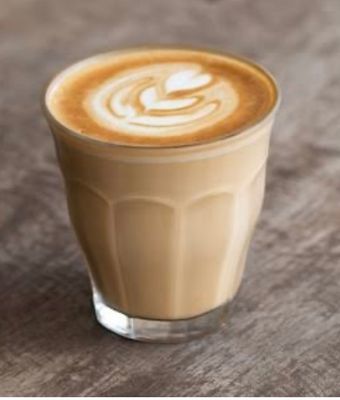 A single shot of coffee , mixed with chocolate blend, topped with steamed milk & choc sprinkle