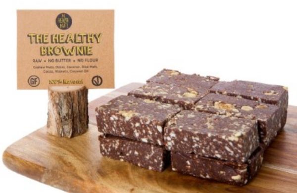 100% vegan, gluten-free, dairy-free brownie that tastes great and nourishes your body and soul. The Healthy Brownie is made from cashew nuts, dates, coconut, organic rice malt, cocoa, walnuts and coconut oil.