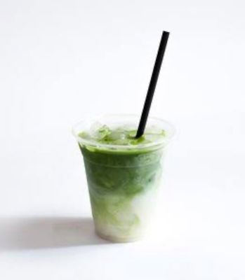 Two teaspoons pure Matcha, in a 16oz cup, loaded with ice & milk.