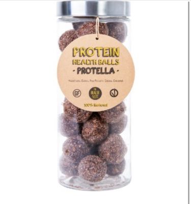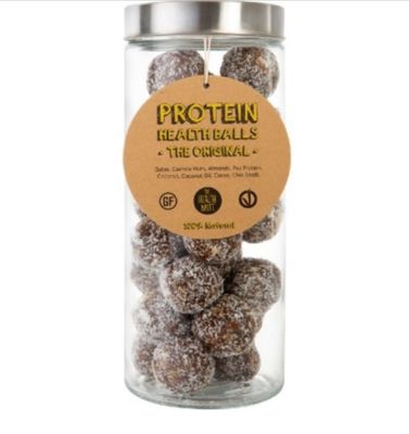 The original protein ball contains dates, cashew nuts, almonds, pea protein, coconut, coconut oil, cocoa and chia seeds.